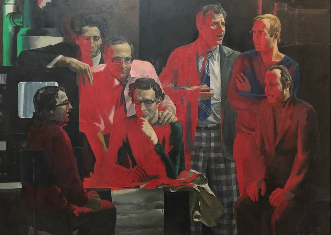 Художник запечатлел групповой портрет семерых советских физиков, совершивших революционное открытие в конце 1960-х годов. Именно эта группа учёных под руководством Жореса Алфёрова изобрела лазер на гетеропереходах – открытие, которое изменило мир и сделало возможными современные лазерные диски, светодиоды, мобильную связь и всю полупроводниковую электронику.
